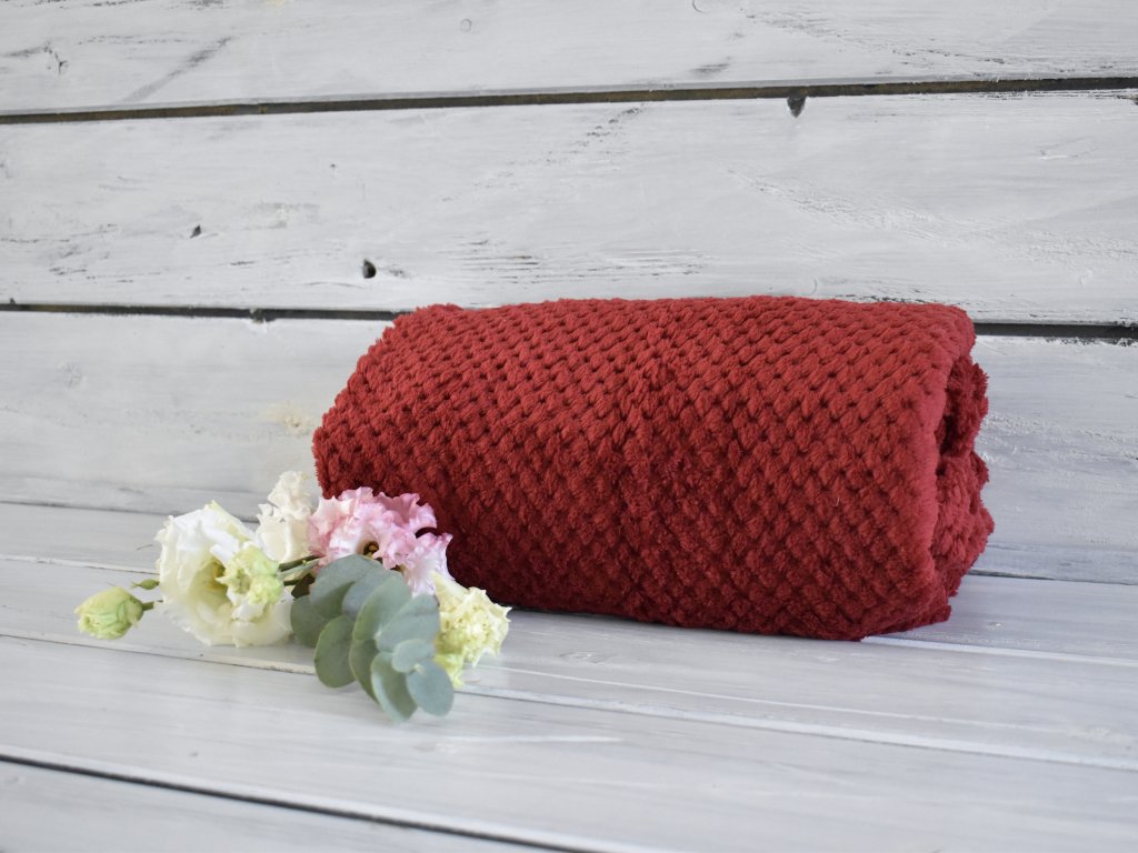 Krásná deka pro miminko ve vínové barvě. Přidejte si do košíku výšivku a dárek bude dokonalý.