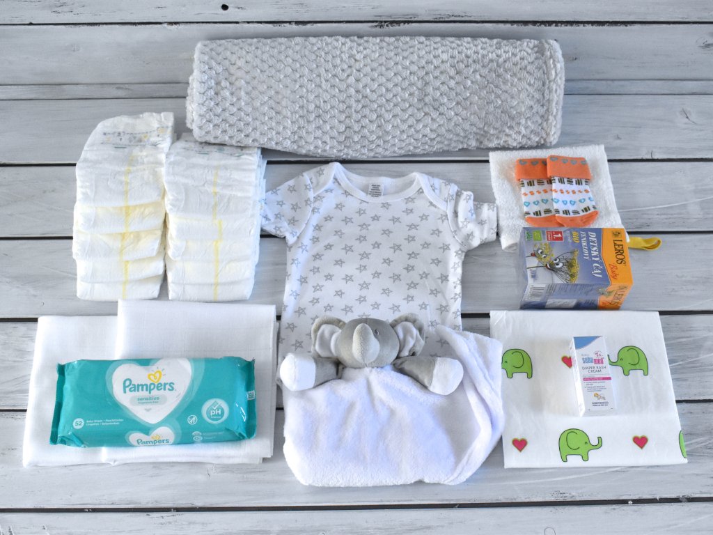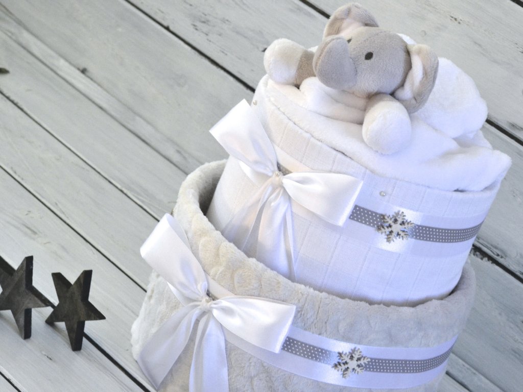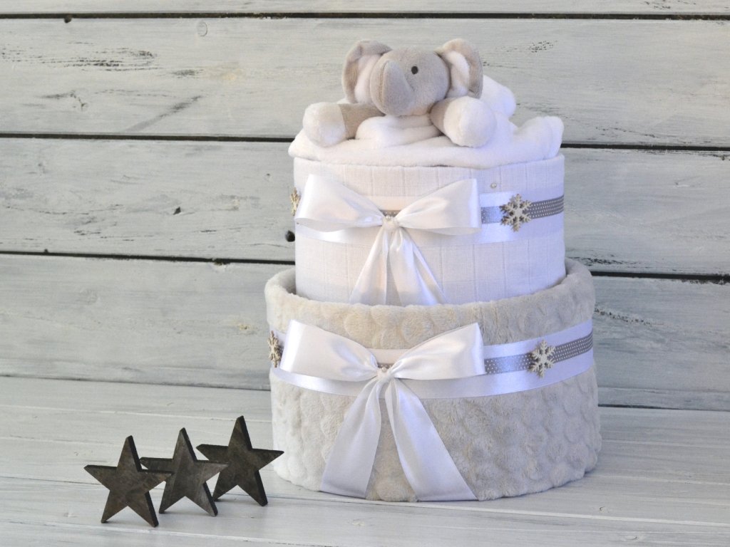 Náplň tohoto dvoupatrového plenkového dortu tvoří: